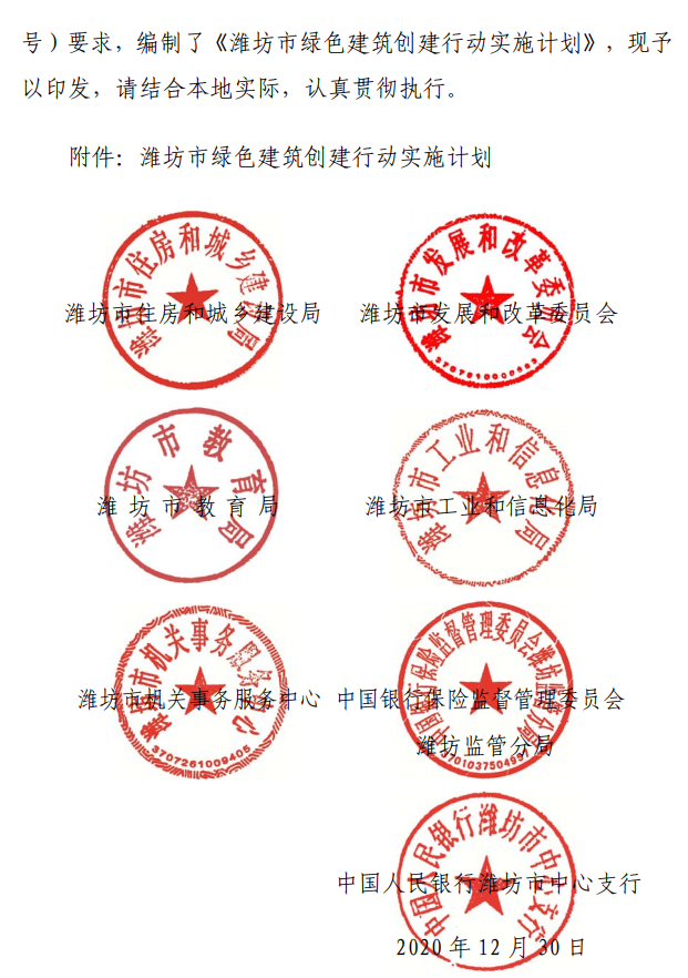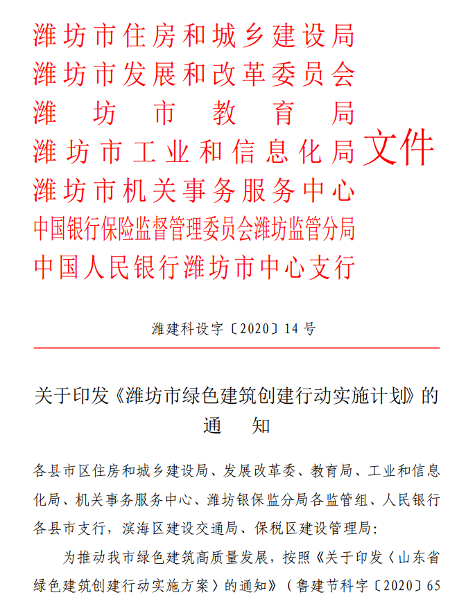 山东潍坊七部门印发《潍坊市绿色建筑创建行动实施计划》
